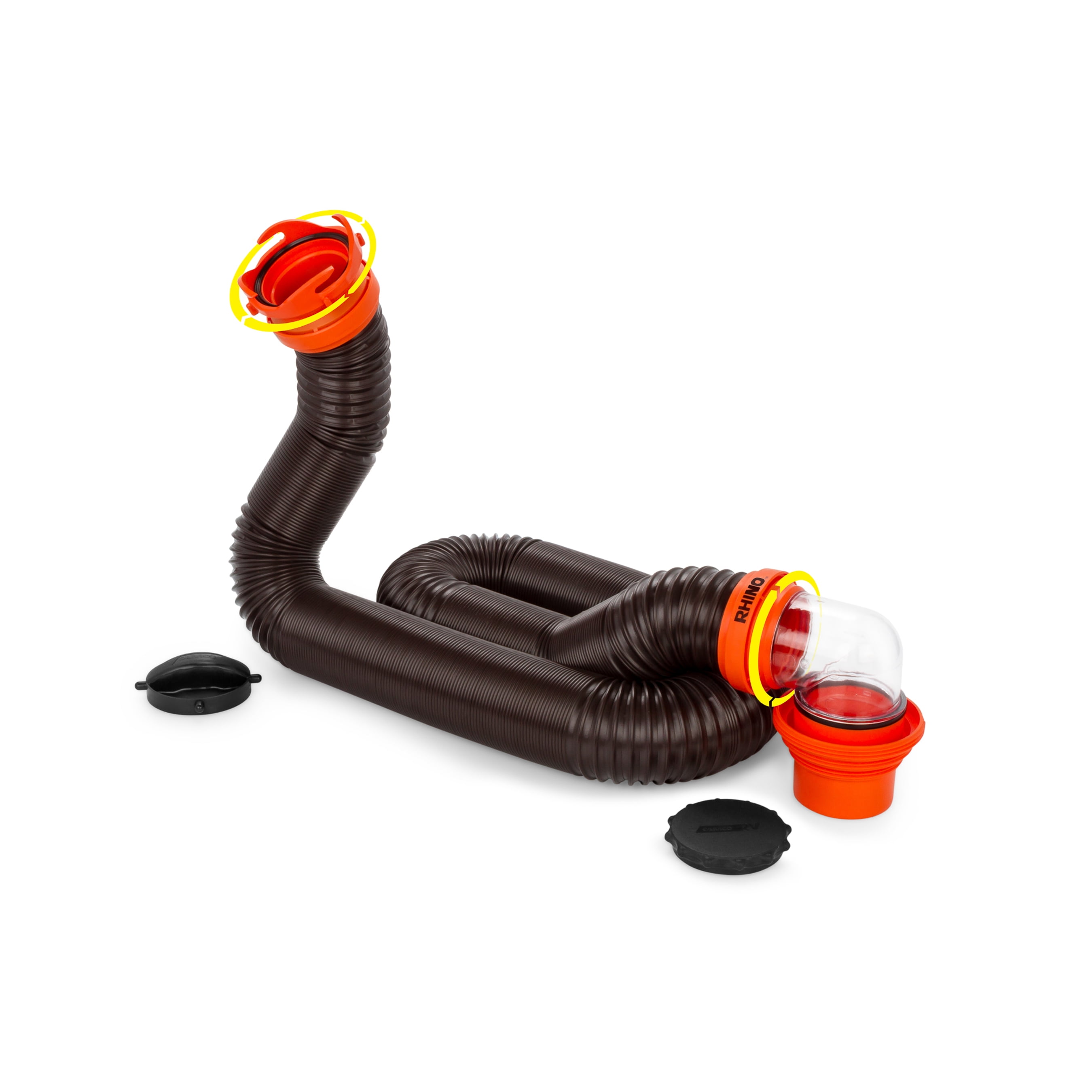 Camco Rhinoflex 10 Foot Sewer Hose Extension With Swivel Bayonet And Lug 23 Mils Of Durable Polyolefin Black Orange 39763 Walmart Com